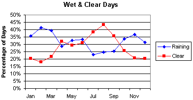 It is clear that winter and spring have the best weather with more fine days than rainy ones. |