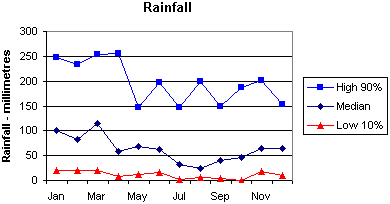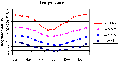 Overall rain is fairly low. The wettest period is summer and early autumn. Average yearly rainfall is 980 mm (39 inches). |