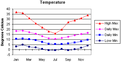 February is the driest month but walking in any season is reasonable. Yearly rainfall is about 1180 mm (47 inches). |