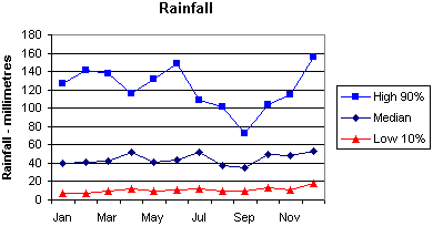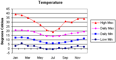 This park is in a rain shadow and has low rainfall. Rainfall is spread evenly throughout the year. Yearly rainfall is about 690 mm (27 inches). |