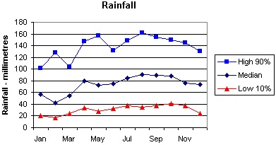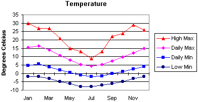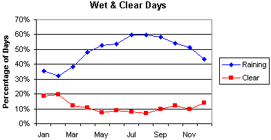 February is the driest month but walking in January and February is also reasonable. Yearly rainfall is about 1000 mm (40 inches). |