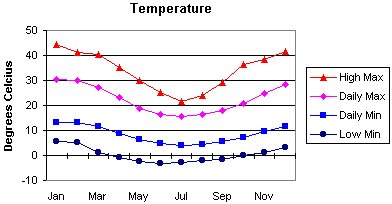 Winter is very wet but fairly short and September to April is ideal for walking with low rainfall. Average yearly rainfall is 960 mm (38 inches). |