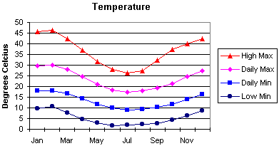 Winter is very wet but fairly short and September to April is ideal for walking with low rainfall. Average yearly rainfall is 870 mm (34 inches). |