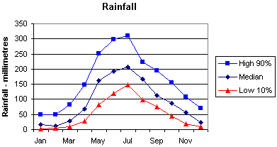 Winter is very wet. The nearby ocean supplies moisture all year and even in summer there is significant rainfall. Average yearly rainfall is 1200 mm (42 inches). |